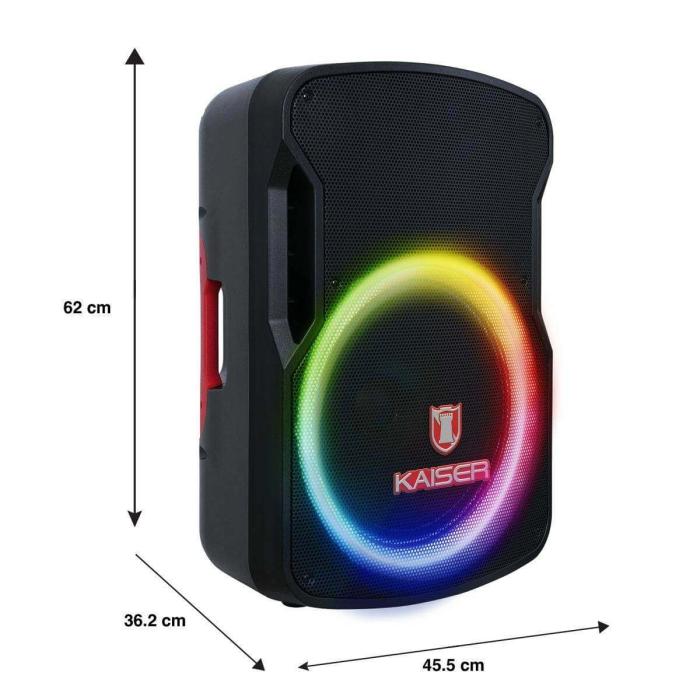Con funciones como Bluetooth, radio, micrófono y luces LED, el Bafle Profesional 15 Kaiser es perfecto para animar tus fiestas y eventos. Además, su control remoto y soporte incluidos te brindan mayor comodidad y versatilidad en su uso. No esperes más y lleva la música a otro nivel con este increíble bafle.